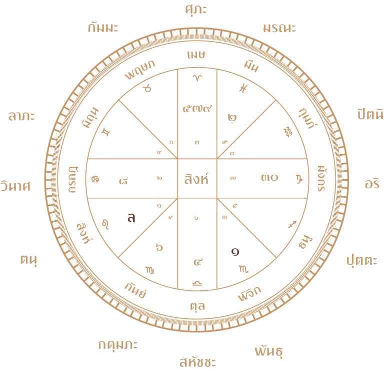 ชะตานี้เกิดที่ลัคนาสิงห์ มีดาวประจำตัวคือดาวอาทิตย์ (๑) สถิตที่ราศีพิจิก วิถีชีวิตส่วนใหญ่จึงใช้เวลาร่วมกับคนในครอบครัวมากก มีภาระหน้าที่หรือความรับผิดชอบในเรื่องครอบครัว