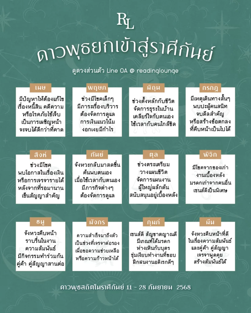 ดาวพุธยกเข้าสู่ราศีกันย์ 11 – 28 กันยายน 2568
